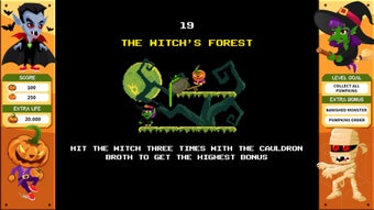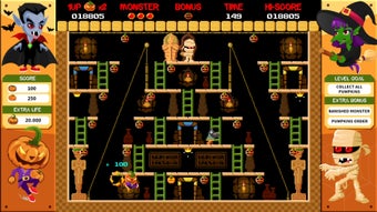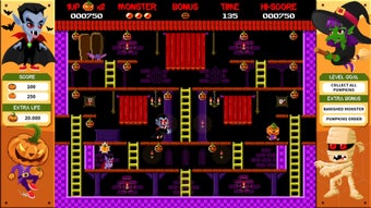 Halloween 1985 mixes familiar platforming with retro flair and bonus objectives. Each monster stage features unique environmental traps that require you to experiment and master timing. Collect pumpkins in a specific lit order and banish the monster with its trap to grant major bonuses. One-hit deaths and limited lives amplify the challenge, recalling old arcade difficulty curves.